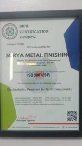 Surya Metal Finishing is an innovator in the Electro Plating industry, since 2002, especially for Precious Metal platings like Silver and Gold for electrical and electronics Industry. Surya Metal Finishing has over 20 years of research and experience. Headquartered in Chennai, India, Surya Metal Finishing, Smart Creations, was one of the first to introduce the novel concept of electroplating and Electrophoretic lacquer, popularly known as ED lacquers to the South Indian market. Surya Metal Finishing precise, electroplating services include over 7 metals in a wide range of textured finishes.